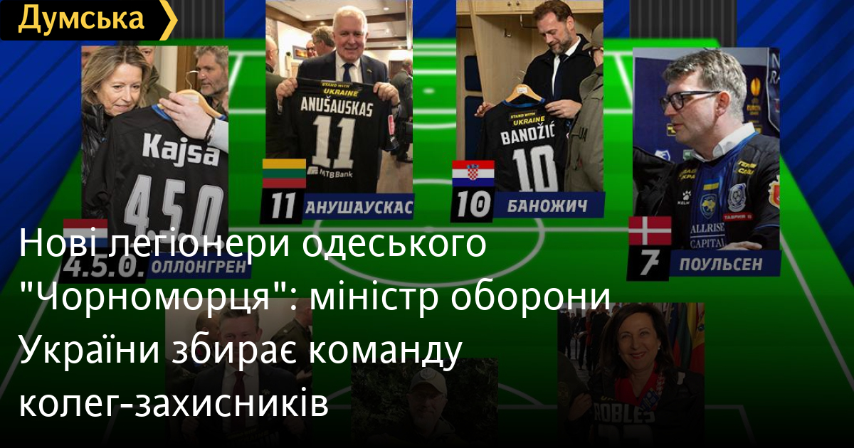 Нові легіонери одеського «Чорноморця»: міністр оборони України збирає команду колег-захисниківМіністр оборони України Олексій Резніков на зустрічі в «Рамштайні» подарував колегам із трьох європейських країн іменні ігрові футболки «Чорноморця». Так, новими легіонерами «оборонної» збірної чорно-синіх стали Арвідас Анушаускас із Литви, Пол Йонсон зі Швеції та іспанка Маргарита Роблес, повідомляють самі «моряки». Сам Резніков вибрав собі позицію голкіпера. «Усі вони вже знайомі з домашнім стадіоном клубу, були в роздягальні та навіть виходили на поле. А зараз ще й отримали свої іменні ігрові футболки, тож матимуть у чому зустрічатися з колегами у форматі «без краваток», — ідеться в офіційному повідомленні клубу. Нагадаємо, що свої номери та футболки вже отримали міністр оборони Нідерландів Кайса Оллонгрен, Данії — Троєлс Пунд Поульсен і Хорватії — Маріо Баножич. «Набір до «оборонної» збірної триває, селекційна робота не вщухає і ми віримо в комунікативні здібності Олексія Резнікова», — додали в клубі. СМЕРТЬ РОСІЙСЬКИМ ОКУПАНТАМ! Помітили помилку? Виділяйте слова з помилкою та натискайте control-enter |
