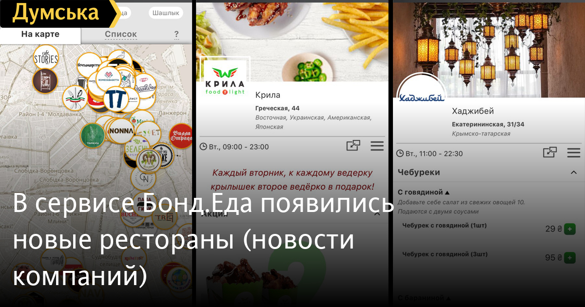 Каждую неделю к сервису «Бонд.Еда» подключаются новые рестораны Одессы. Теперь быстрая доставка работает из заведений «Ромео & Багетта», «Как в ресторане», «Бризмарин» и ресторана крымско-татарской кухни «Хаджибей». А ресторан быстрого питания «Крила» добавился в сервис с акцией: каждый вторник, купив одно ведерко крылышек, второе получаете в подарок. «Бонд.Еда» — сервис быстрой доставки еды из одесских ресторанов на базе приложения такси «Бонд». Доступен также на сайте eda.bond.od.ua. СМЕРТЬ РОССИЙСКИМ ОККУПАНТАМ! Заметили ошибку? Выделяйте слова с ошибкой и нажимайте control-enter |