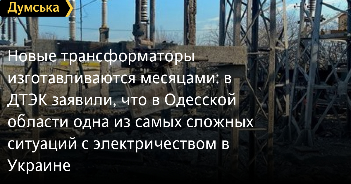Новые трансформаторы изготавливаются месяцами: в ДТЭК заявили, что в Одесской области одна из самых сложных ситуаций с электричеством в Украине