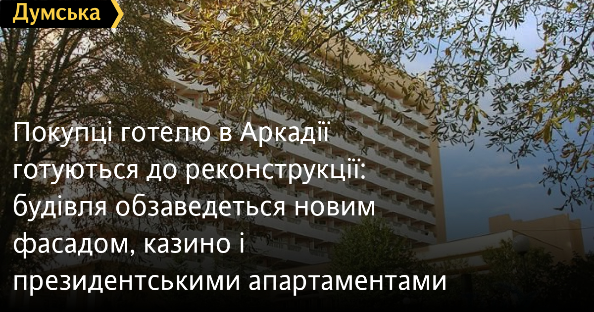 Покупці готелю в Аркадії готуються до реконструкції: будівля обзаведеться новим фасадом, казино і президентськими апартаментамиНа готель «Вікторія» на Генуезькій вулиці в Одесі чекає масштабна реконструкція. Нещодавно Державна інспекція архітектури та містобудування України видала дозвіл на проведення робіт, передає кореспондент «Думської». У документі зазначено, що реконструкція не передбачає зміни розмірів будівлі, при цьому її площа збільшиться з 17029 до 17415 кв. м, а корисна — з 5977,5 до 12578,9 кв. м. Готель отримає новий фасад — у стилістиці будівель, які нещодавно побудували в Аркадії. Крім іншого, у ньому з'являться нові приміщення загального користування, а також «апартаменти й номери з літніми приміщеннями», чия площа становитиме 4592,7 кв. м. Серед них - два президентські апартаменти, п'ять номерів категорії «люкс», 11 номерів для людей з інвалідністю. Роботи триватимуть 14 місяців. Замовник реконструкції — компанія «Макао», яка придбала готель у травні 2021 року на аукціоні, організованому Фондом гарантування вкладів фізосіб. Раніше активи належали «Місто Банку», який лопнув. «Макао» заплатив за комплекс 139,34 млн грн. Зазначимо, що спочатку стартова ціна готелю становила 197 млн грн, але ФГВФО довелося її знизити через відсутність охочих узяти участь у торгах. ТОВ «Макао» було засновано 8 грудня 2000 року в Києві зі статутним капіталом 30 млн грн. Директор — Микола Чаплигін, бенефіціар — громадянин Казахстану Ібрагім Сулейманов. Основний вид діяльності — організація азартних ігор. Микола Чаплигін також є засновником і директором столичної компанії «Аурум Геймс» з аналогічним видом діяльності, а Сулейманов — ТОВ «Данаїда» (діяльність готелів). Очевидно, нові власники розраховують розмістити в «Вікторії» казино. Готель «Вікторія» було побудовано 1990 року. У ньому 229 номерів. Помітили помилку? Виділяйте слова з помилкою та натискайте control-enter |