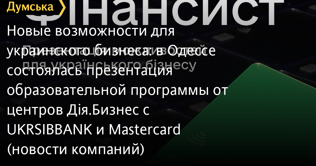 Нові можливості для українського бізнесу: в Одесі відбулася презентація освітньої програми від центрів Дія.Бізнес з UKRSIBBANK та Mastercard (новини компаній)Презентація програми «Фінансист» відбулася в центрі Дія.Бізнес в Одесі 13 грудня 2022 року. Центр підтримки підприємців Дія.Бізнес в Одесі долучився до програми в рамках тристороннього партнерства UKRSIBBANK BNP Paribas Group та Mastercard, яке відкриє нові можливості для представників малого та середнього бізнесу. В рамках програми «Фінансист» експерти з різних сфер розповідатимуть про управління фінансами, тенденції розвитку українського підприємництва, технологічні рішення, маркетинг-стратегії та ін. Лекції безкоштовні – послухати їх зможуть всі охочі. «Кількість нових бізнесів, які зареєструвалися за останні кілька місяців, — на 30% більша, ніж на початку пандемії. Бізнеси по всій країні не тільки продовжують працювати, але і з'являються нові підприємства та ФОПи. Люди повертаються до роботи на тих територіях, де це можливо. Тому Мінцифра підтримує багато ініціатив для розвитку підприємництва, адже економічний фронт сьогодні як ніколи важливий», – розповіла Валерія Іонан, заступниця міністра цифрової трансформації з питань євроінтеграції. Вона додала, що за офіційними даними, більшість бізнесу бере активну участь у боротьбі за незалежність – 93,4% залучені у допомогу під час війни, а близько 70% безпосередньо залучені у волонтерську діяльність. «Як банк, який прагне сталого розвитку, ми віримо у потужний потенціал середнього та малого бізнесу та створюємо умови для розвитку підприємців. Разом з Mastercard та Дія. Бізнес ми розпочали стратегічне партнерство, яке відкриє нові можливості для наших клієнтів. Вже зараз ми запускаємо серію відкритих практичних лекцій, які будуть корисними як тим, хто лише планує власну справу, так і тим, хто вже має досвід бізнесу», – розповів Андрій Кашперук, заступник Голови Правління з питань роздрібного бізнесу UKRSIBBANK BNP Paribas Group. За його словами, найближчим часом фінансові експерти UKRSIBBANK BNP Paribas Group почнуть працювати у центрах Дія.Бізнес. Вони консультуватимуть підприємців, як відкрити та обслуговувати рахунки, як спростити документообіг за допомогою електронного цифрового підпису, як проводити розрахунково-касові операції за допомогою платіжної картки, як використовувати поточний рахунок для основної бізнес-діяльності тощо. «Українські підприємці – це рушійна сила економіки, і передумова для її відновлення. Щодня вони стійко зустрічають виклики нової реальності, адаптують свій бізнес і докладають зусилля заради відновлення своєї справи і всієї країни. При цьому вони дуже прогресивні: опитування серед підприємців Mastercard SME Index каже, що вже 70% із них використовують цифрові канали продажів, і 87% приймають оплату у безготівковій формі – це допомагає їм вистояти і розвивати бізнес», – зазначила Анна Онищенко, віцепрезидентка по роботі з клієнтами Mastercard в Україні. Анна Онищенко переконана, що важливо надати більш широку консультаційну підтримку підприємцям з розвитку бізнесу у нових умовах, використання фінансових інструментів та цифрових сервісів. «Ми відкрили центр Дія.Бізнес в Одесі 11 червня 2021 року з грандіозними планами для підтримки мікро-, малого та середнього підприємництва. Коли почали роботу над проектом і коли запустились, ми не підозрювали, які вик