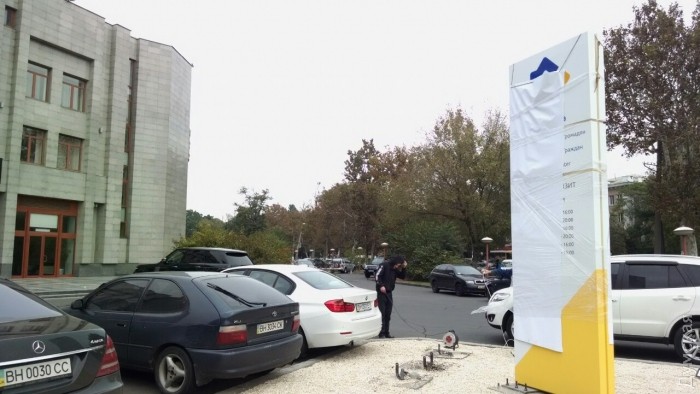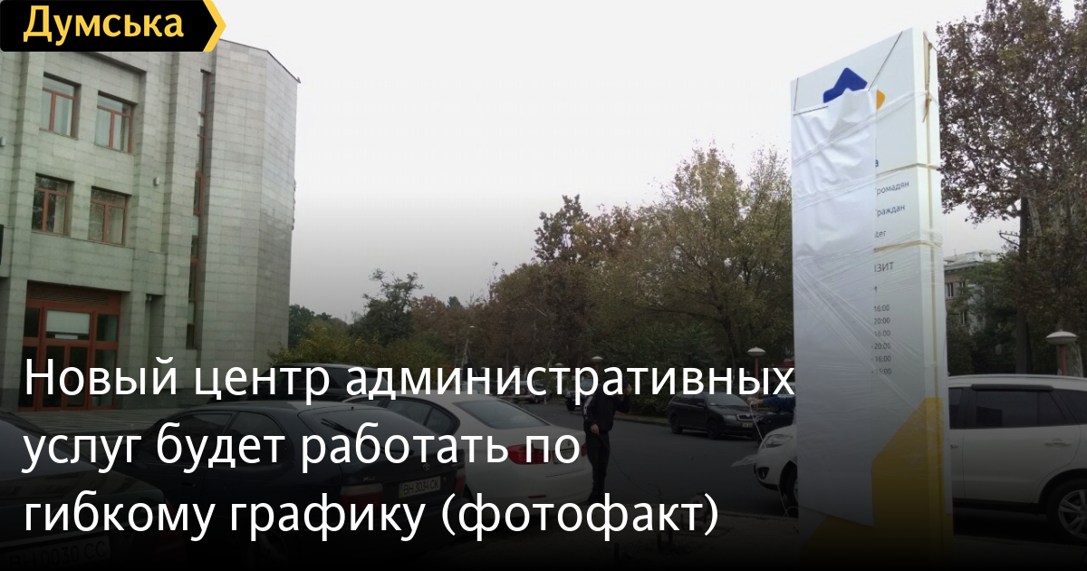 Возле здания будущего центра административных услуг, что на проспекте Шевченко, появилась информационная стелла. Изображение на ней почти полностью закрыто упаковочной бумагой, но по видимым надписям можно сделать выводы о будущем графике работы учреждения.
