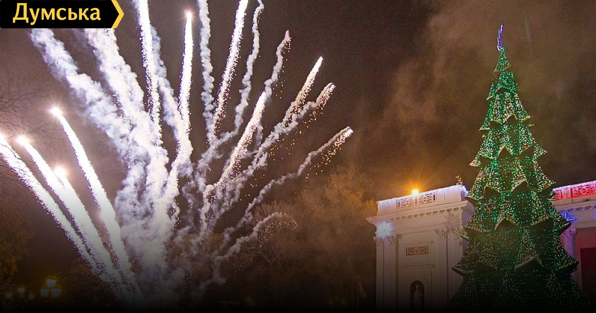 Празднование Нового года на Думской площади проходит по отработанной схеме. Перед зданием городского совета установлена сцена, с которой развлекают собравшихся одесские артисты.