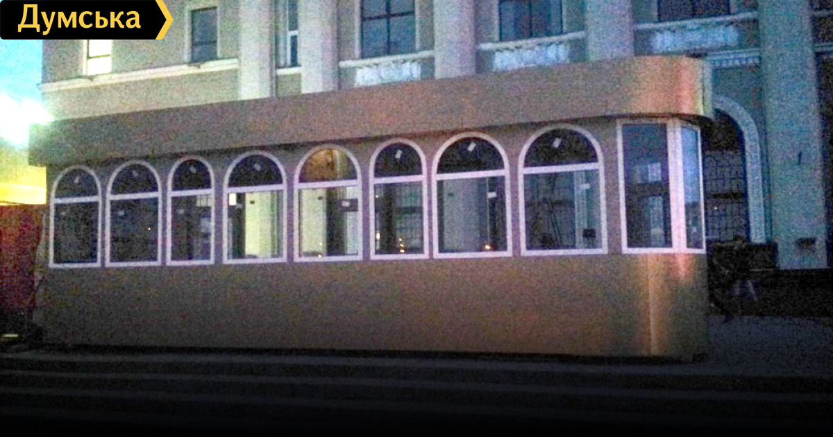 Я представляю, что бы сделали люди, если бы такой отврат поставили на ступеньках вокзала города Львов. Там ходишь и любуешься архитектурным шедевром, а у нас вместо того, чтобы улучшать и без того посредственный вокзал, его еще больше уродуют. Сделали лучше бы навесы над перронами.