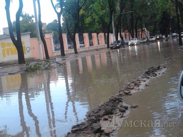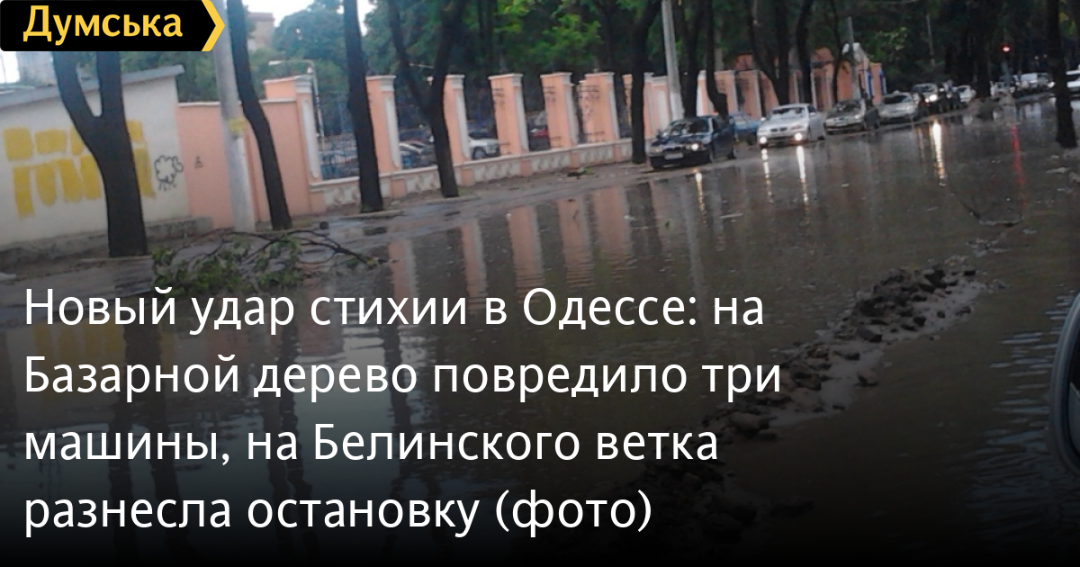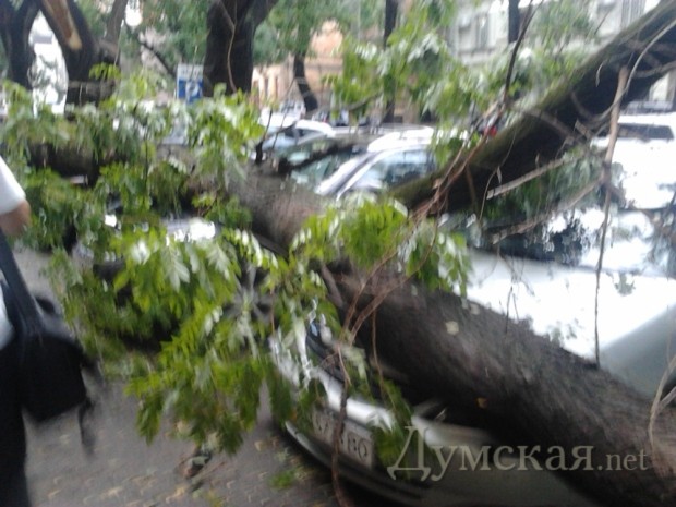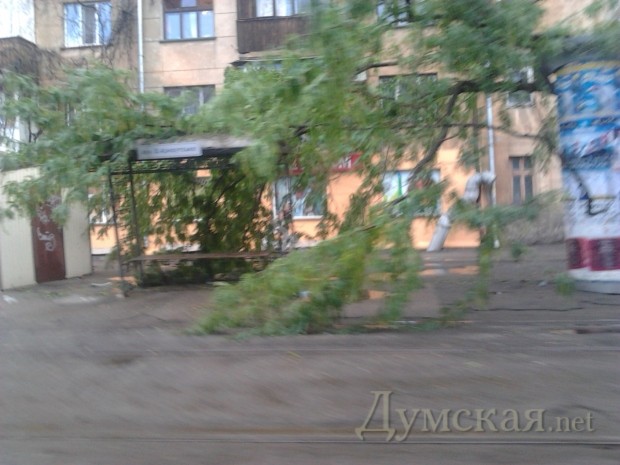 В редакцию «Думской» продолжают поступать сообщения о последствиях нового удара стихии по Одессе. Как передают ваши корреспонденты, на углу Базарной и Маразлиевской упавшая акация повредила три автомобиля. На Белинского, не доезжая до театра Музкомедии, дерево придавило трамвайную остановку.