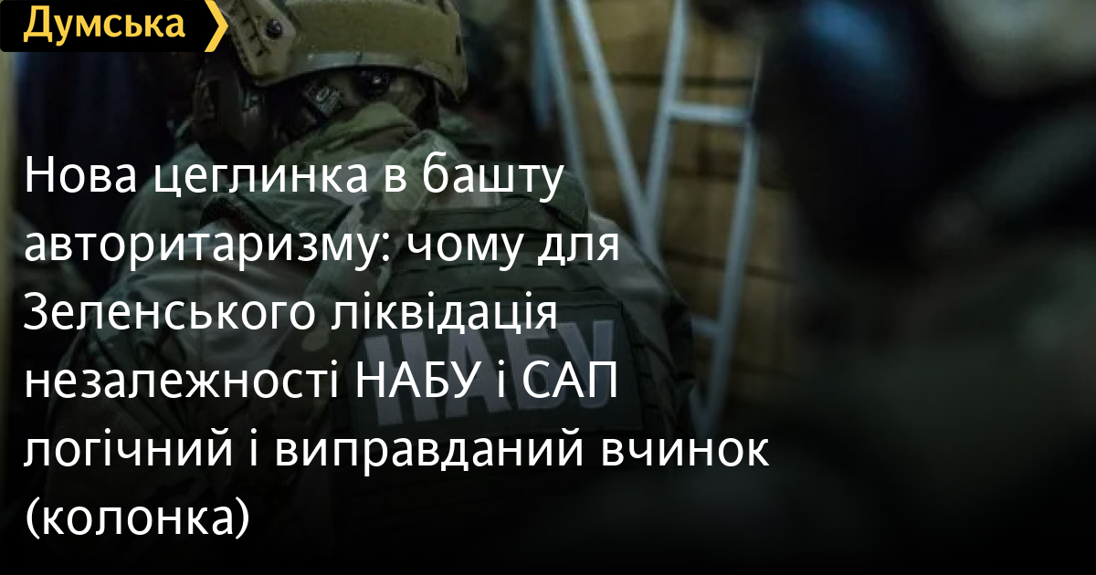 Нова цеглинка в башту авторитаризму: чому для Зеленського ліквідація незалежності НАБУ і САП — логічний і виправданий вчинок (колонка)