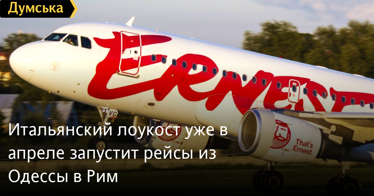 Регулярные авиарейсы из Одессы в Рим и обратно запустит с 19 апреля итальянский лоукост Ernest Airlines.