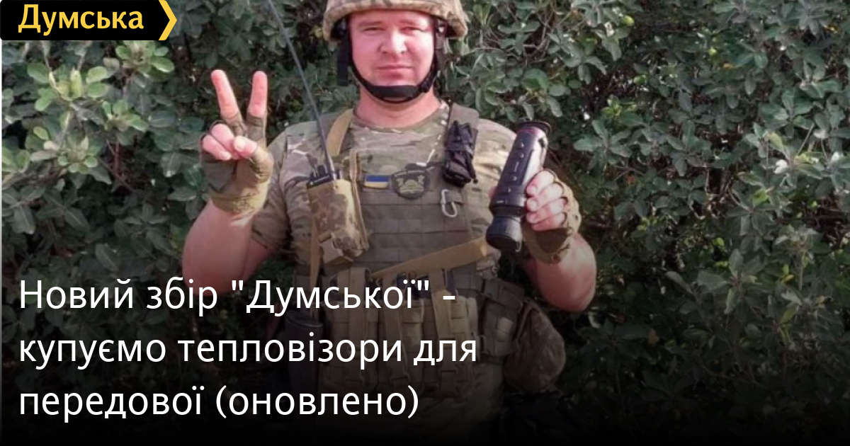 «Думська» оголошує новий збір – на купівлю тепловізорів для наших захисників.