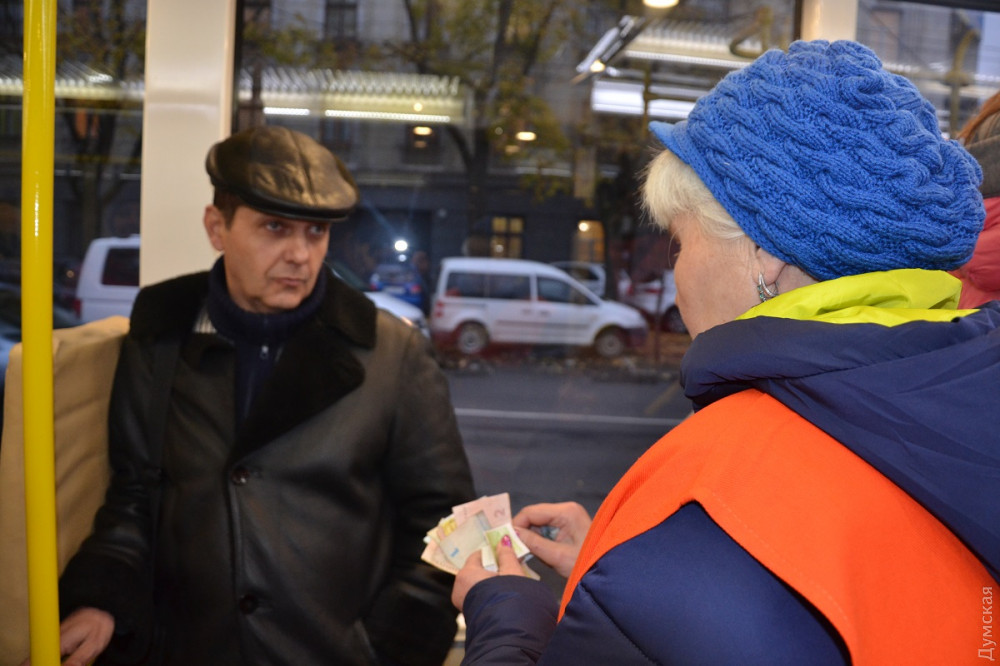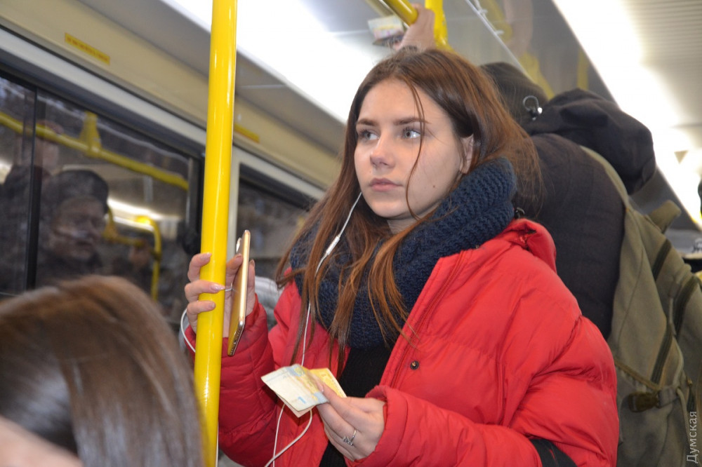 «Одиссею» сразу же пришлось непросто – востребованность маршрута №18 высокая, и трамвай оказался заполнен пассажирами. Кондуктору пришлось пробиваться сквозь толпы одесситов, чтобы обилетить всех.