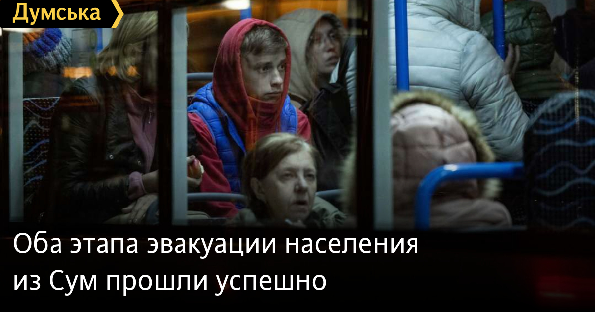 Оба этапа эвакуации гражданского населения из Сум 8 марта завершились успешно, и теперь около пяти тысяч человек находятся в безопасности.