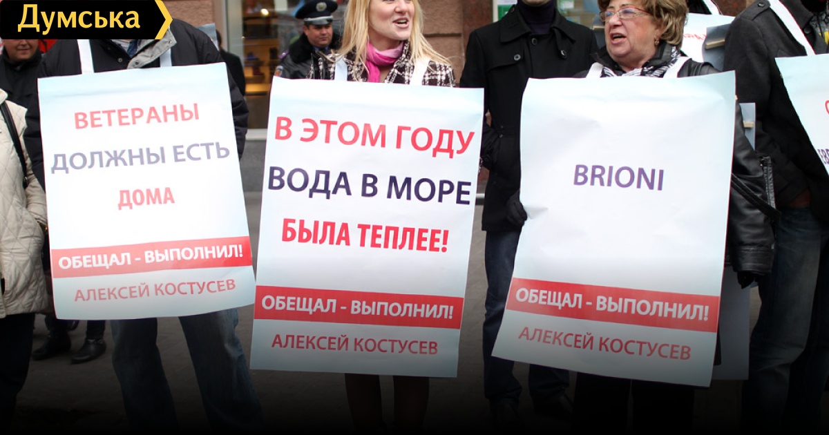 Два десятка одесситов пикетировали Русский театр перед отчетом мэра Одессы Алексея Костусева. Пикетчики вышли на Греческую с плакатами, стилизованными под наружную рекламу Алексея Костусева из серии «Обещал — выполнил!». Перед митингующими выступил глава Интернет партии Украины Дмитрий Голубов. Он выразил слова глубокой благодарности Алексею Костусеву за проделанную им за год работу на посту мэра Одессы.