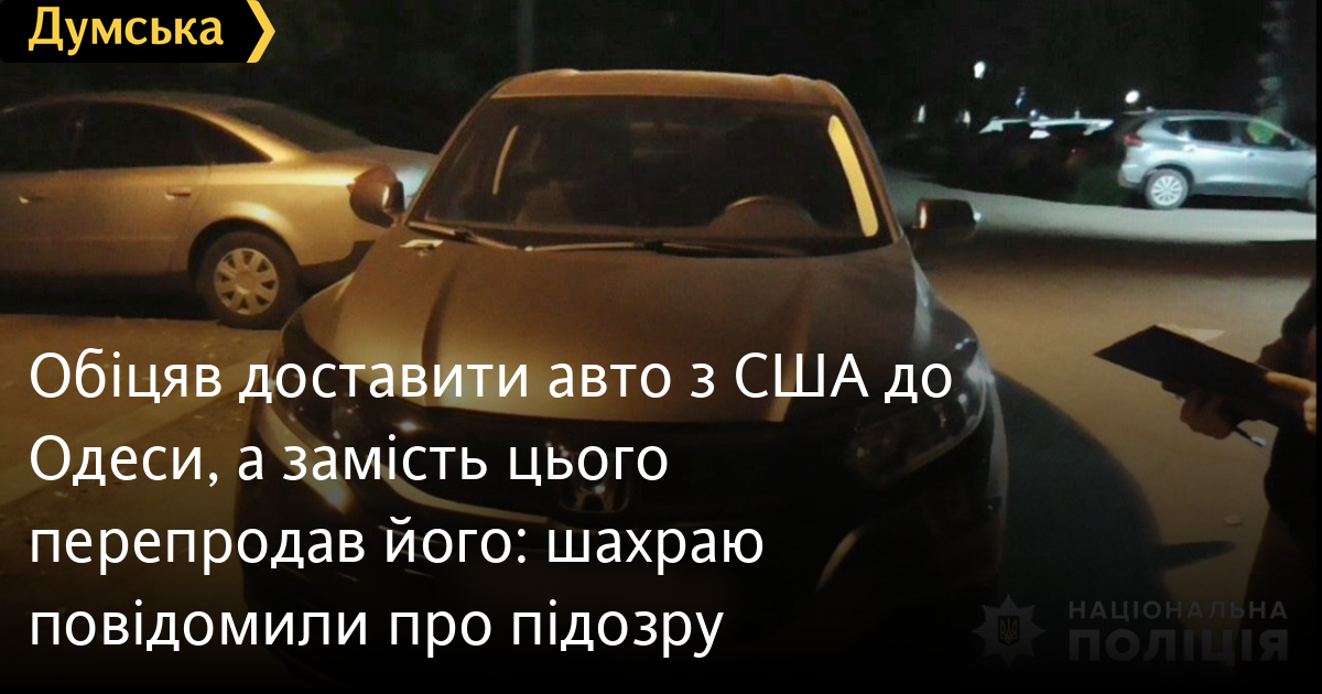 Обіцяв доставити авто з США до Одеси, а замість цього перепродав його: шахраю повідомили про підозруШахрайську схему з доставки авто, купленого на онлайн аукціоні в США, викрили одеські правоохоронці. Чоловіку, який отримав гроші за транспортування машини, а натомість продав її третій особі, повідомили про підозру у шахрайстві, повідомили в поліції регіону. До поліції звернулась одеситка, яка довго чекала на придбаний у вересні 2021-го мінікросовер з США. Керівник транспортно-експедиторської компанії, що мав привезти авто з-за кордону, перестав виходити на зв’язок. За свою Honda HR-V LX жінка заплатила 10 тисяч доларів. Про перевезення машини вона домовилась із керівником спеціалізованої компанії. Той, за версією слідства, розмитнивши машину, продав її іншому одеситу за ті ж 10 тисяч доларів, видавши за свій. Втім, новий власник теж звернувся у поліцію, адже побачив в документах на транспорт і в інвойс-проформі імʼя незнайомої жінки – справжньої власниці. Поліцейські розшукали зловмисника, йому повідомили про підозру у шахрайстві (ч. 2 ст. 190 Кримінального кодексу України (в редакції ККУ до внесення змін Законом України № 3233-IX від 13 липня 2023 року). Авто вилучили як речовий доказ. Наразі вирішується питання щодо обрання підозрюваному запобіжного заходу. Раніше поліцейські викрили фігуранта в аналогічних протиправних діях. Він допоміг клієнту придбати автомобіль на американському аукціоні, а згодом перепродав іномарку іншій людині. СМЕРТЬ РОСІЙСЬКИМ ОКУПАНТАМ! Помітили помилку? Виділяйте слова з помилкою та натискайте control-enter |