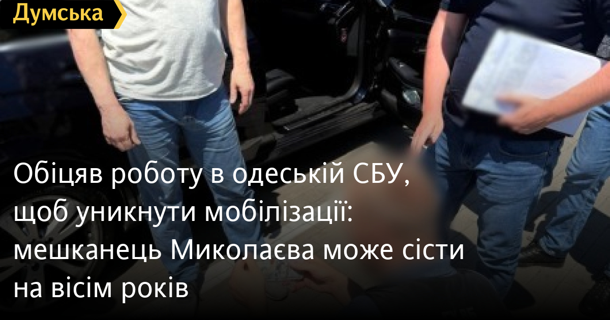 До восьми років позбавлення волі загрожує 48-річному жителю Миколаєва, який обіцяв одеситу працевлаштувати його в СБУ, щоб уникнути мобілізації.