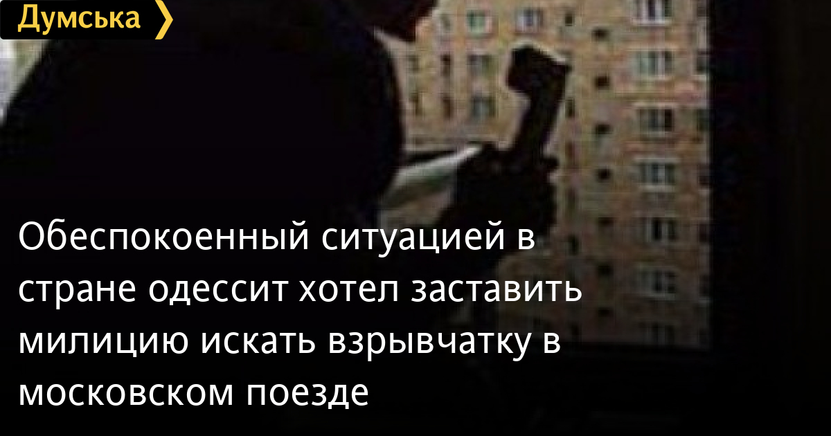 Обеспокоенный ситуацией в стране одессит хотел заставить милицию искать взрывчатку в московском поездеНа спецлинию «102» поступило очередное сообщение о минировании объектов Одесской железной дороги. Правда, как уточнили в пресс-службе милиции, на этот раз звонивший представился и изъяснялся более осторожно — «высказал свои предположения относительно возможных взрывов в пассажирском поезде сообщением «Одесса-Москва» и на одном из железнодорожных переездов города». В итоге выяснилось, что гражданин, будучи в состоянии сильного алкогольного опьянения, со своего домашнего телефона предоставил на спецлинию надуманные сведения. «Свои действия мужчина объясняет тем, что из-за нестабильной обстановки в государстве у него возникли предположения о взрывах, которые могут произойти на объектах железной дороги, хотя никакой информации о возможных минированиях он на самом деле не имел», — отметили в милиции. В ведомстве подчеркнули, что такие «предположения» влекут за собой уголовную ответственность – производство открыто по ч. 1 ст. 259 (заведомо ложное сообщение об угрозе безопасности граждан, уничтожении или повреждении объектов собственности) УК Украины, которая предусматривает наказание в виде лишения свободы на срок от двух до шести лет. После экспертизы, которая подтвердила наличие в крови мужчины значительного количества алкоголя, ему избрали меру пресечения в виде домашнего ареста. СМЕРТЬ РОССИЙСКИМ ОККУПАНТАМ! Заметили ошибку? Выделяйте слова с ошибкой и нажимайте control-enter |