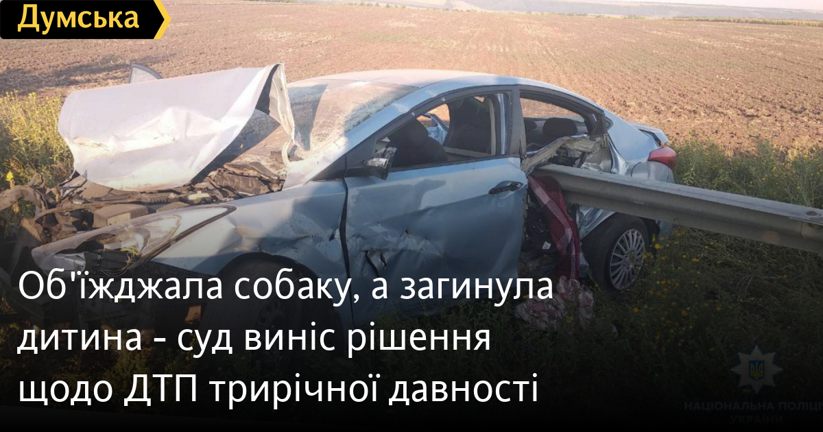 Дарницький районний суд Києва виніс рішення щодо ДТП, яка сталася більше трьох років тому на автодорозі Одеса-Київ неподалік Любашівки. Водійка, намагаючись на великій щвидкості об'їхати собаку, що вибігла на дорогу, врізалася у відбійник. В тій аварії загинув семирічний хлопчик, а семирічна дівчинка отримала важкі травми.