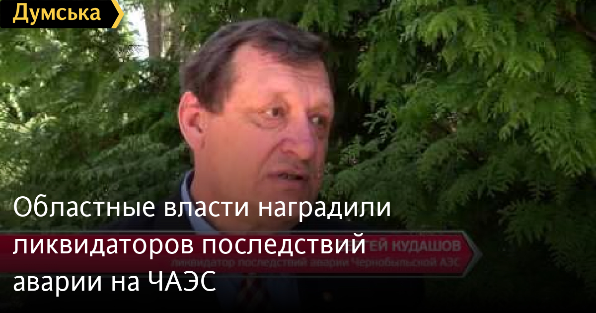 В преддверии трагической даты областные власти чествовали ликвидаторов аварии ЧАЭС. Им вручили памятные грамотами, почетные знаки и ценные подарки. Напомню, указом Президента весь 2016-й объявлен годом чествования участников устранения последствий и памяти жертв Чернобыльской катастрофы СМЕРТЬ РОССИЙСКИМ ОККУПАНТАМ! Заметили ошибку? Выделяйте слова с ошибкой и нажимайте control-enter Думская ТВ. Сюжеты: