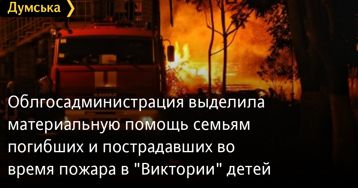 Глава Одесской областной администрации Максим Степанов подписал распоряжение о выделении единоразовой материальной помощи семьям погибших и пострадавших во время пожара в «Виктории» детей.
