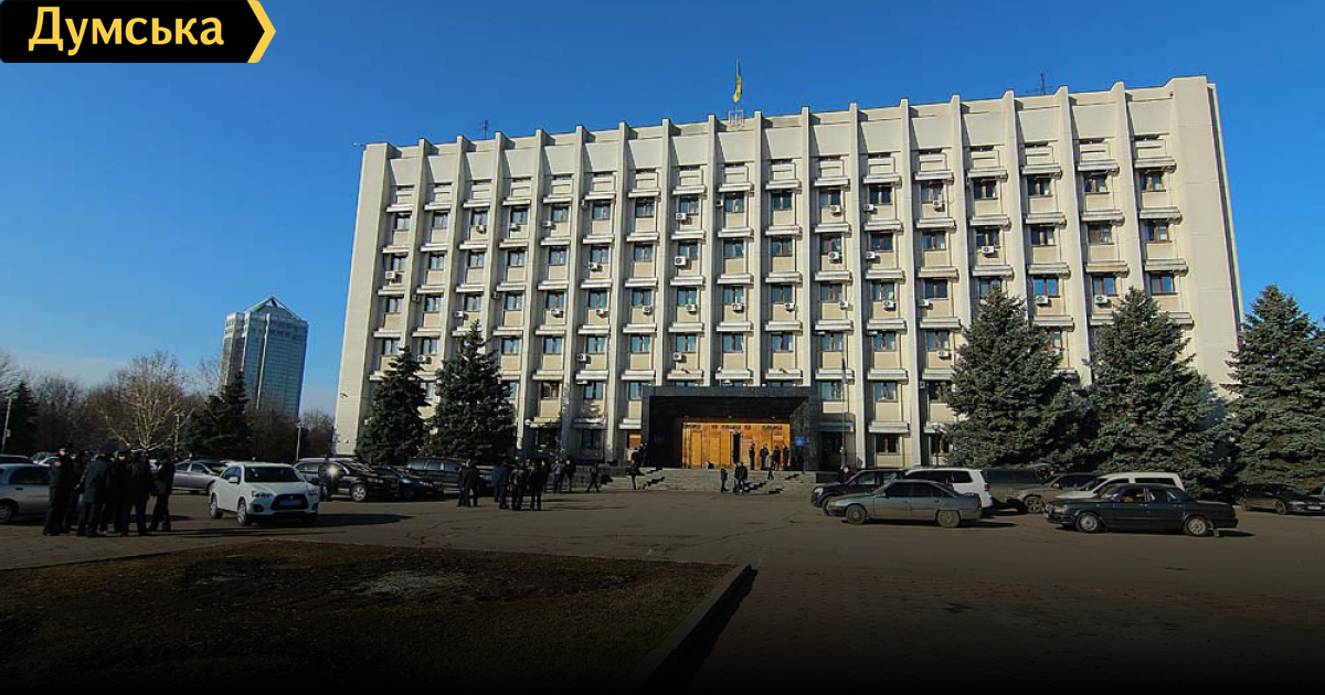 Вокруг админздания на проспекте Шевченко, где вот-вот начнется сессия областного совета, все спокойно. Митингующих нет, но очень много милиции. Главные двери частично заколочены досками. На втором этаже здания — развернутые пожарные рукава.