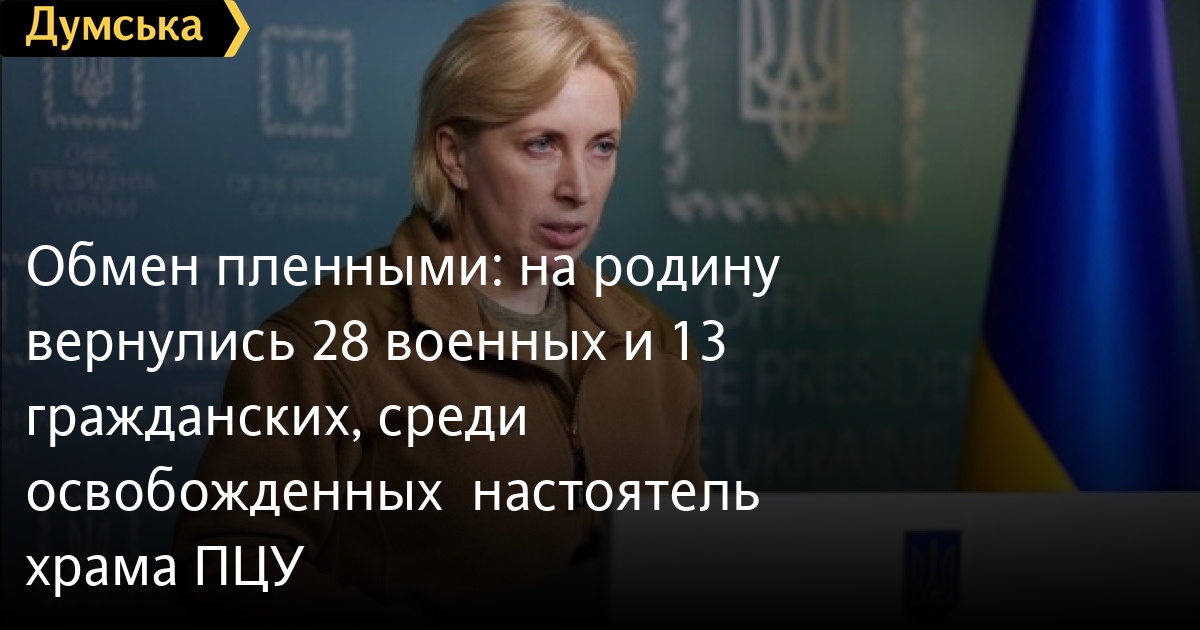 Как сообщила министр по вопросам реинтеграции временно оккупированных территорий Ирина Верещук, в Украину вернулся 41 человек. Из них — 28 военных и 13 гражданских.
