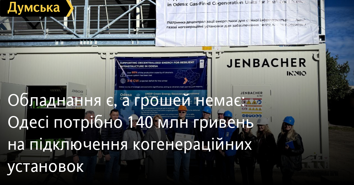 Близько 140 млн гривень необхідно для того, щоб усі подаровані Одесі урядом Японії когенераційні установки почали працювати та забезпечувати електроенергією критичну інфраструктуру.