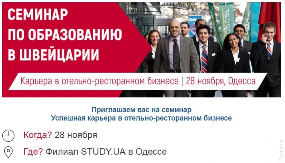 Образование в Швейцарии: новые возможности для успешных одесситов (на правах рекламы)В Одессе пройдет образовательный семинар, который организовывает компания STUDY UA. На нем каждый гость сможет ознакомиться с передовым учебным заведением Швейцарии в сфере гостинично-ресторанного бизнеса — B.H.M.S. University Centre. «В настоящее время гостинично-ресторанный бизнес является динамично развивающейся отраслью экономики. Получив высококлассное образование в Швейцарии, украинский выпускник сможет получить высокооплачиваемую работу как за границей, так и в Украине», — говорит Анна Терещенко, директор одесского филиала STUDY UA. Швейцария занимает первое место по подготовке квалифицированных специалистов в сфере туризма и гостинично-ресторанного бизнеса. А национальным лидером по предоставлению образовательных услуг в этой области считается университет B.H.M.S. University Centre в Люцерне. В рамках мероприятия запланирована встреча с представителем швейцарского университета, профессором и региональным директором по маркетингу B.H.M.S. University Centre — Магди Атталла. Спикер готов ответить на любые вопросы, связанные с поступлением и обучением в университете, а также началом международной карьеры после его окончания. «28 ноября мы поговорим о том, почему сфера отельно-ресторанного бизнеса – это лучший выбор для успешного трудоустройства; что представляет собой обучение в Швейцарии; затронем вопрос поступления в университет B.H.M.S.; а наш швейцарский гость дополнительно расскажет о возможностях, которые открываются перед выпускниками после окончания университета», — подчеркивает Анна Терещенко. B.H.M.S. University Centre является единственным университетом гостиничного и туристического бизнеса в Швейцарии с государственной аккредитацией и располагает тремя учебными центрами на набережной озера Люцерн, включая главный кампус в гостинице Radisson Blu Lucerne. Этот семинар направлен, в первую очередь на родителей, которые хотят обеспечить своему ребенку надежное будущее в развивающейся индустрии отельно-ресторанного бизнеса, абитуриентов, которые стремятся получить опыт обучения за рубежом и возможность пройти стажировку в лучших отелях и ресторанах Швейцарии, выпускников украинских учебных заведений, которые нацелены получить престижную степень МВА и помощь в дальнейшем трудоустройстве; а также специалистов в сфере туризма и отельно-ресторанного бизнеса, которые хотят усовершенствовать свои профессиональные навыки, начать международную карьеру или открыть собственное дело. Обучение проходит в современных корпусах в Люцерне. Студенты университета получают уникальную возможность оплачиваемой стажировки по специальности в Швейцарии. Немаловажно и то, что степень бакалавра можно получить всего за три года обучения, а степени магистра и MBA — всего за 1-2 года. Образовательный семинар пройдет 28 ноября по адресу: ул. Базарная, 5/3, ЖК «Капитан», офис 1. Для участия необходима предварительная регистрация по ссылке. СМЕРТЬ РОССИЙСКИМ ОККУПАНТАМ! Заметили ошибку? Выделяйте слова с ошибкой и нажимайте control-enter |