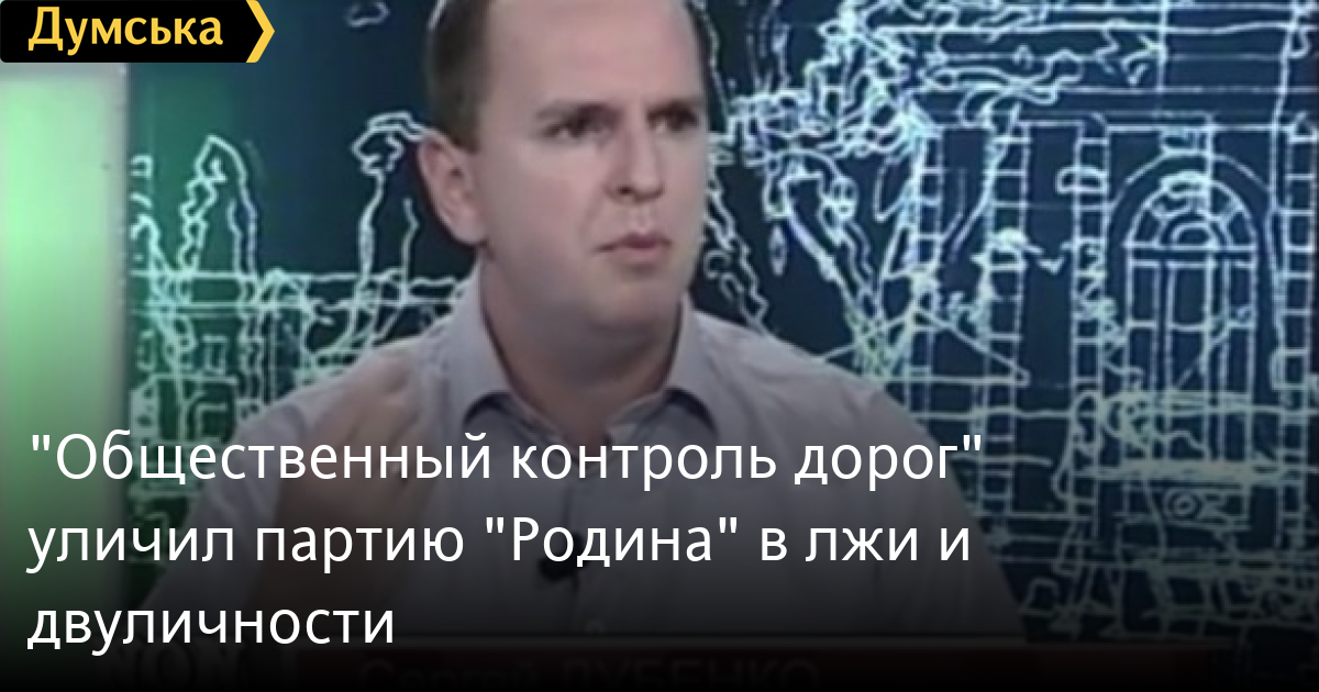 Как пишет портал 4road.net, руководитель «Общественного контроля дорог» Сергей Дубенко поймал партию «Родина» на неоднократной лжи и двуличности и бросил ей вызов на теледебаты.