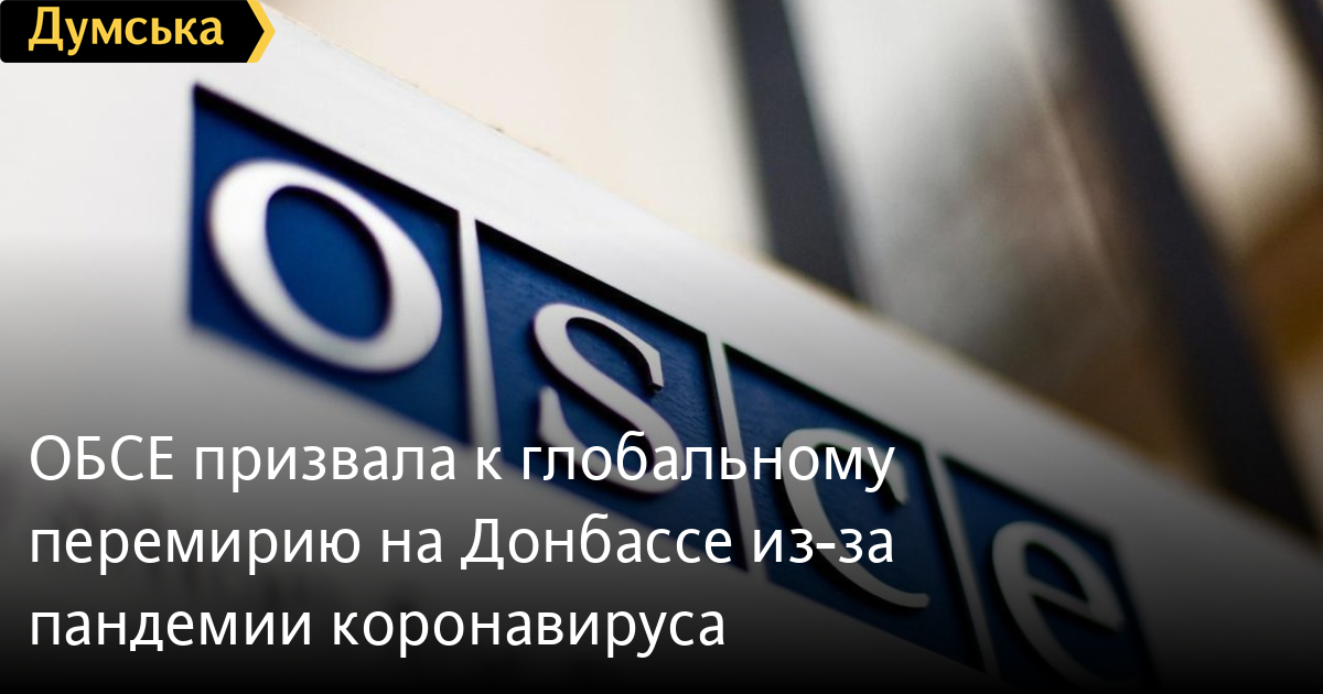 ОБСЕ призвала все стороны конфликта на Донбассе заключить глобальное перемирие, прекратить боевые действия и ввести режим тишины в связи с пандемией коронавируса.