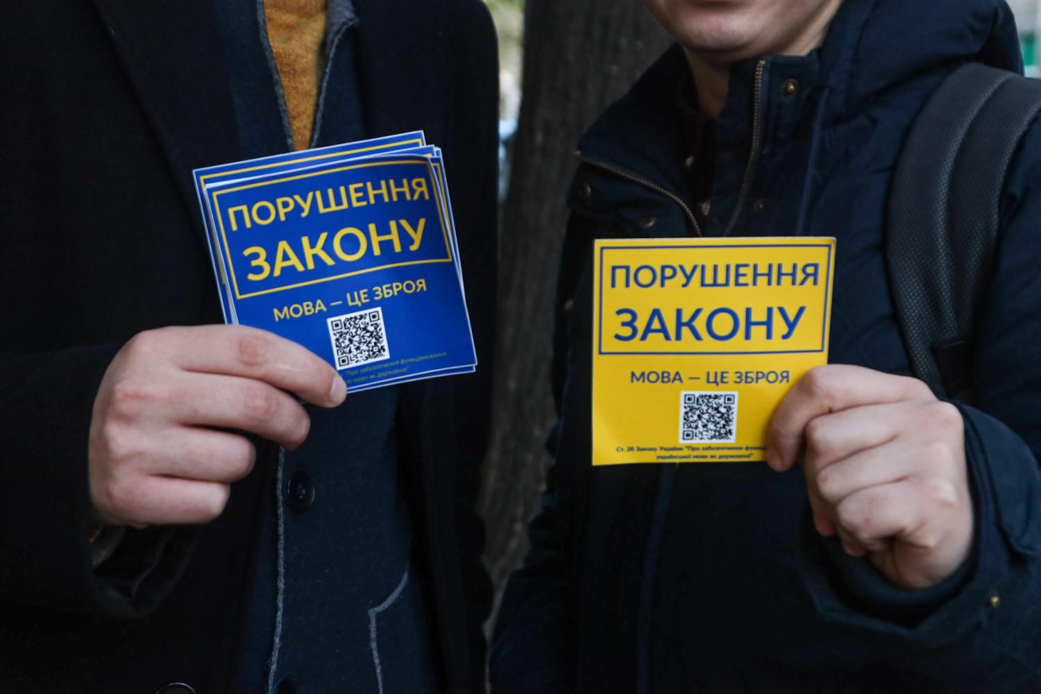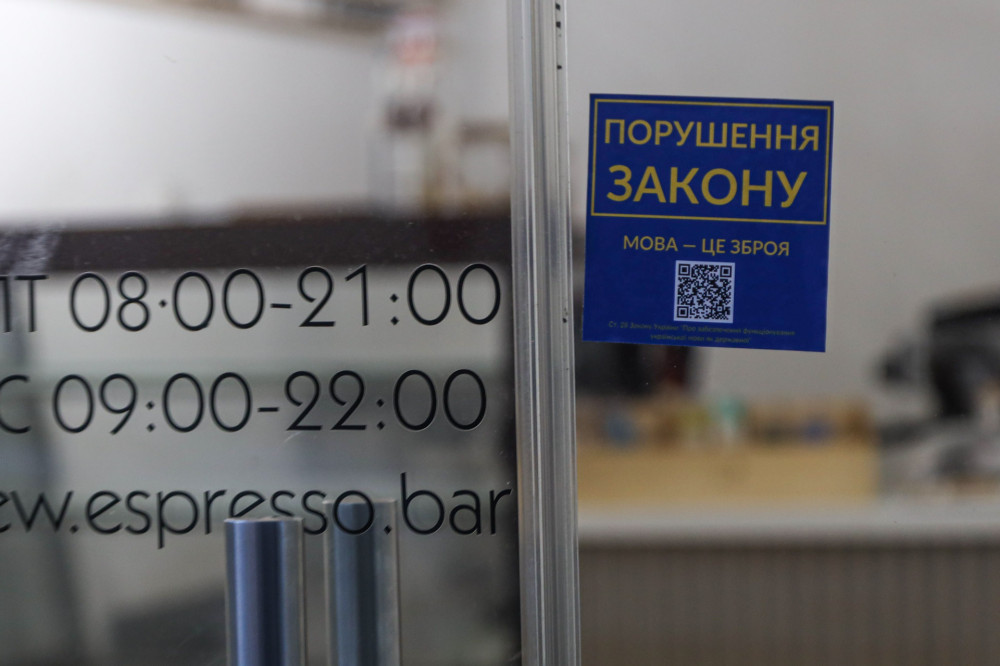 Мало того, что эти горе-активисты не законно проводят проверки и расклеивают таблички, так ещё они сами пишут вывески на русском языке. О чём с ними разговаривать и на каком языке?