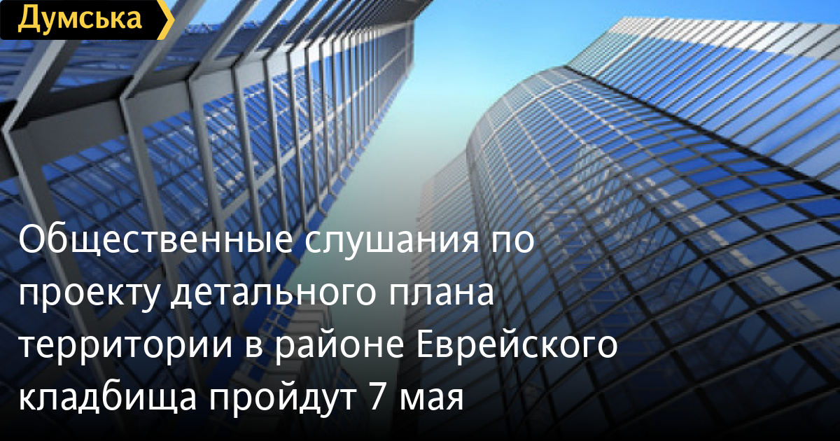 Общественные слушания по проекту детального плана территории возле Еврейского кладбища, который проходит процедуру обсуждения, состоятся 7 мая 2021 в малом зале Центра интегрированных услуг по адресу Косовская, 2д (второй этаж).