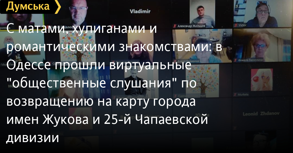 Так называемые «общественные слушания» по поводу возвращения проспекту Небесной Сотни и улице Инглези старых названий состоялись в Одессе в формате «интернет-конференции», передает корреспондент «Думской».