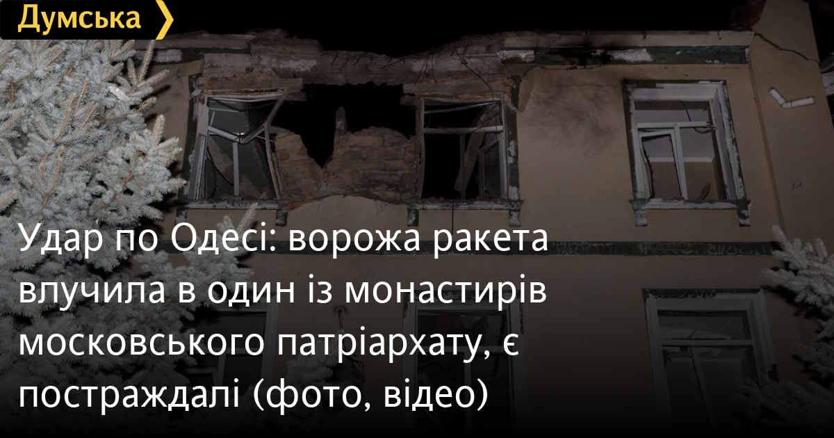 Одна з ракет, випущених російськими окупантами сьогодні ввечері по Одеській області, влучила в монастир московського патріархату.