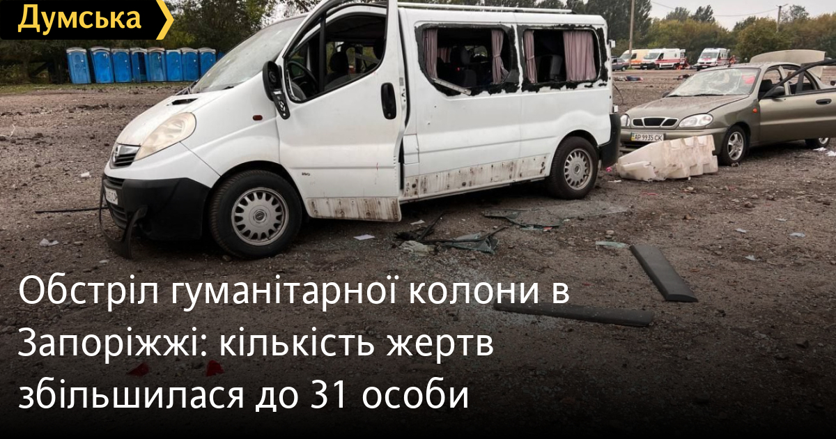 Кількість жертв внаслідок вчорашнього обстрілу гуманітарної колони в Запоріжжі зросла до 31 особи.