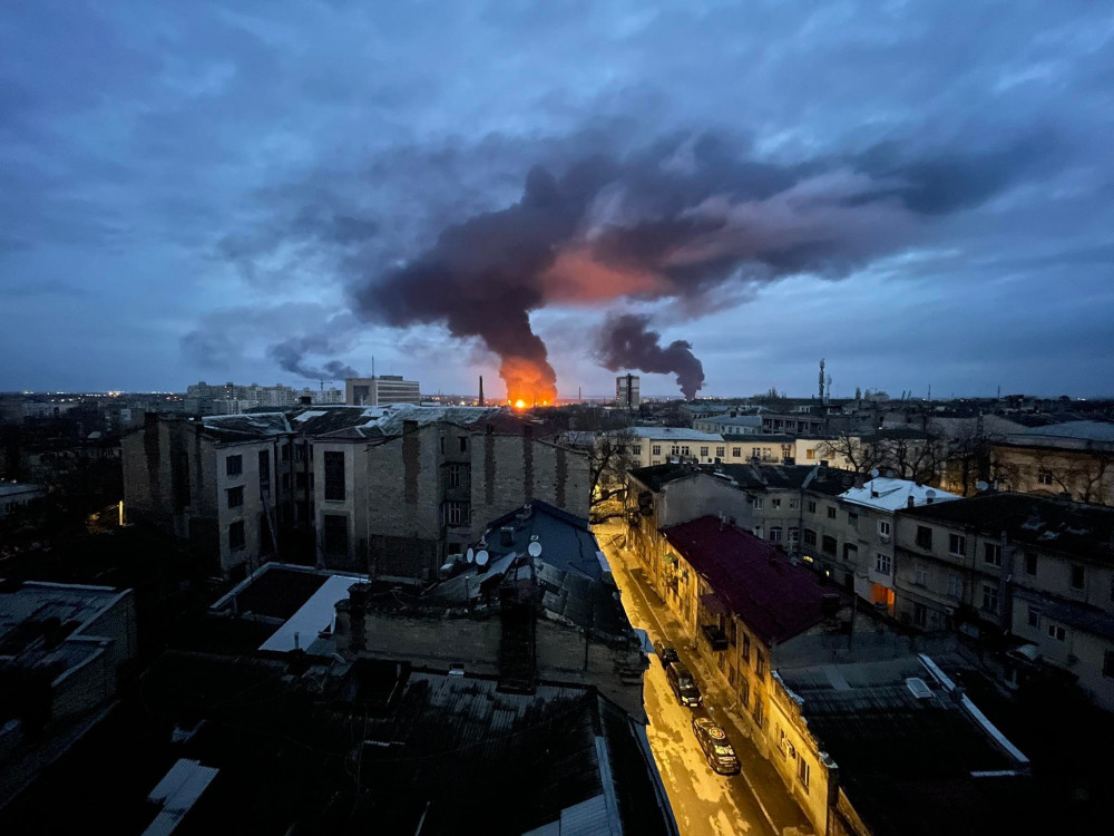 Ракеты, которые сегодня утром прилетели в Одессу, упали на территорию нефтеперерабатывающего завода и соседнего с ним нефтехранилища.