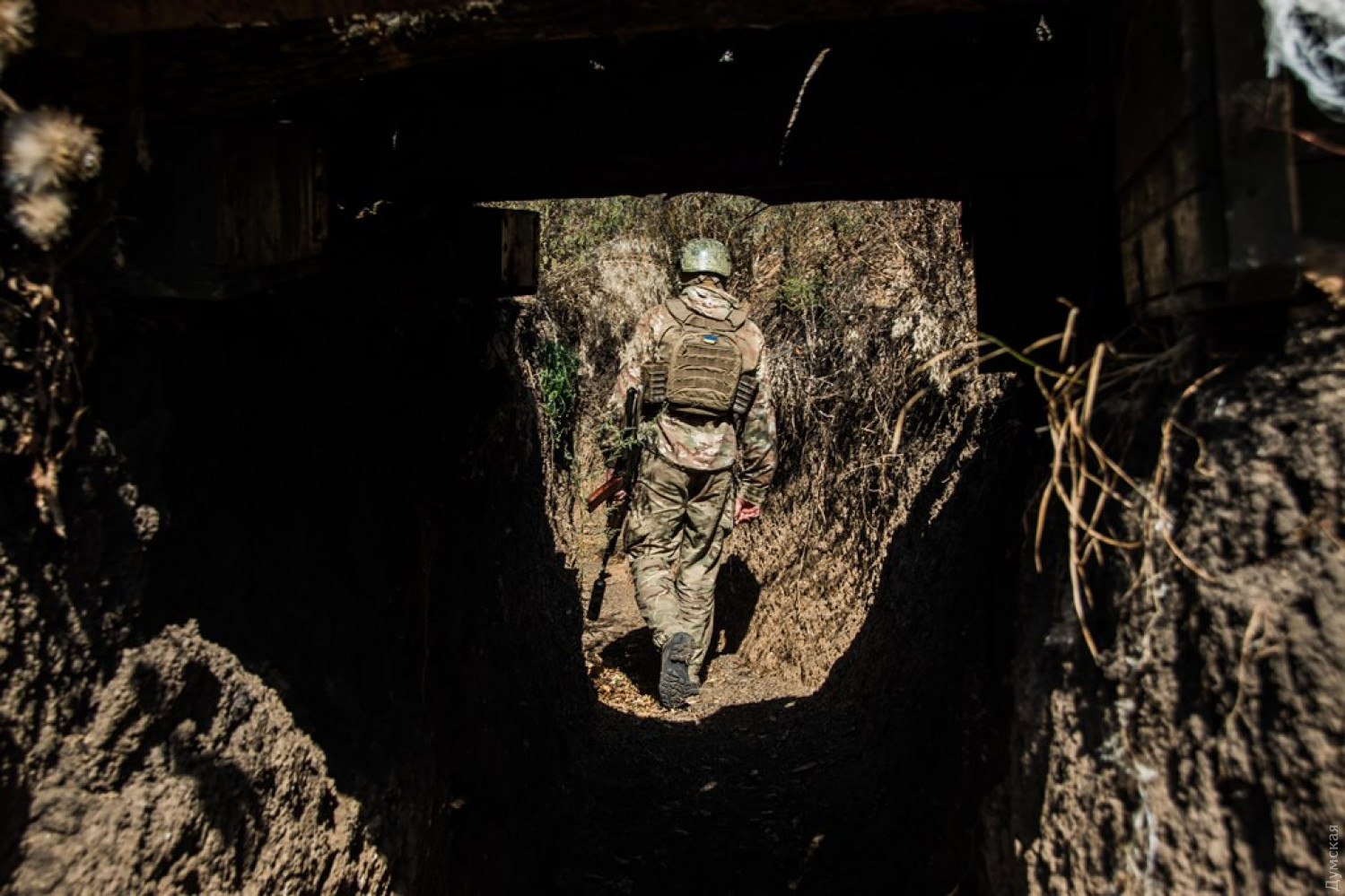 В этом помещении был пожар вследствие атаки. Спасатели до сих пор проливают.