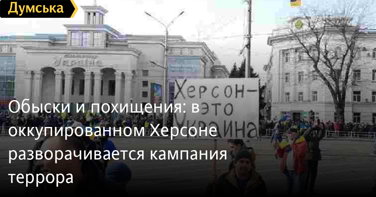 Оккупационный террор в захваченном российскими нацистами Херсоне набирает оборотов. Как сообщили «Думской» местные активисты, в Таврическом микрорайоне города (самый большой спальник Херсона) видели, как карательная структура под названием «росгвардия» окружила дом, который в народе называют «домом СБУ», и проводит обыски. Два дня назад там похитили бывшего сотрудника украинской контрразведки Максима Запорожца. Кроме того, было как минимум четыре обыска в других местах города. Двери одной из квартир подорвали. Пока не очень понятно, какие именно категории населения являются целью начатой «зачистки». Называют ветеранов АТО, сотрудников, в том числе бывших, СБУ, а также активистов проукраинских партий. Угроза нависла и над журналистами. Задержания происходят и на блокпостах, где оккупанты проверяют содержимое телефонов. Возле Дарьевки нацисты открыли огонь по легковой машине. Женщина-водитель погибла. СМЕРТЬ РОССИЙСКИМ ОККУПАНТАМ! Заметили ошибку? Выделяйте слова с ошибкой и нажимайте control-enter |