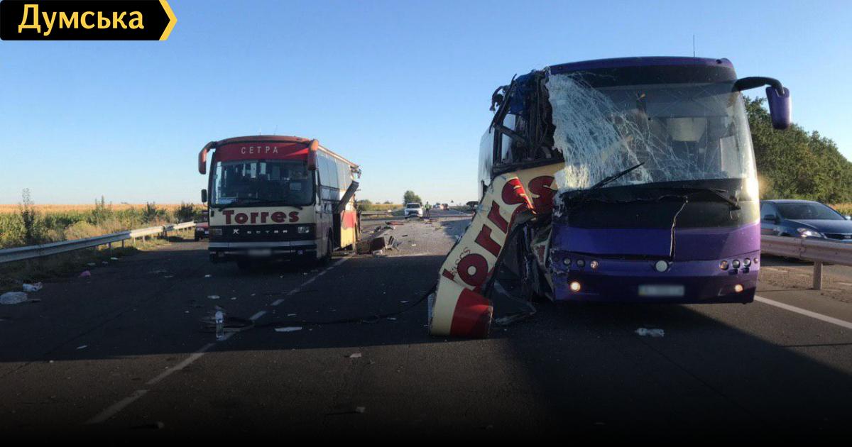 Автобусы Serta (рейс Киев – Одесса) и Тemsa Safari (Кошице – Одесса) столкнулись в 03:15 на трассе Одесса – Киев у села Большие Трояны в Благовещенском районе Кировоградской области.