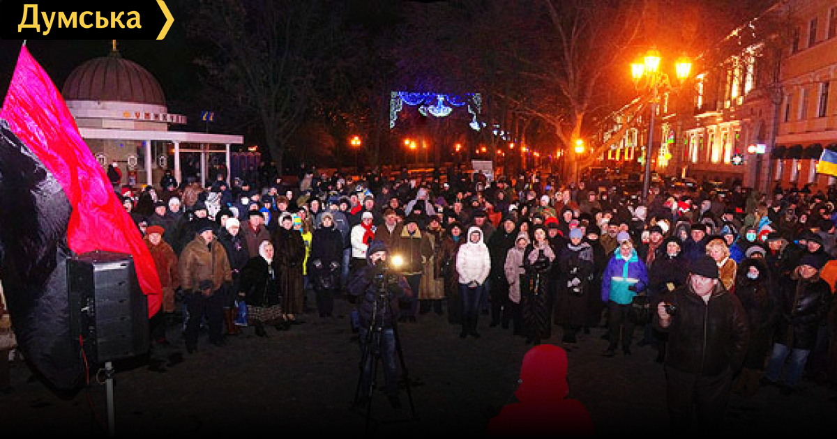 Ближе к восьми вечера присутствующие спели гимн и разошлись: завтра в обед с Куликова поля стартует общеодесский автопробег, а в шесть вечера будет новое собрание под Дюком. Слухи о титушках возле Оперного и автобусах с западноукраинскими боевиками для захвата мэрии не подтвердились.