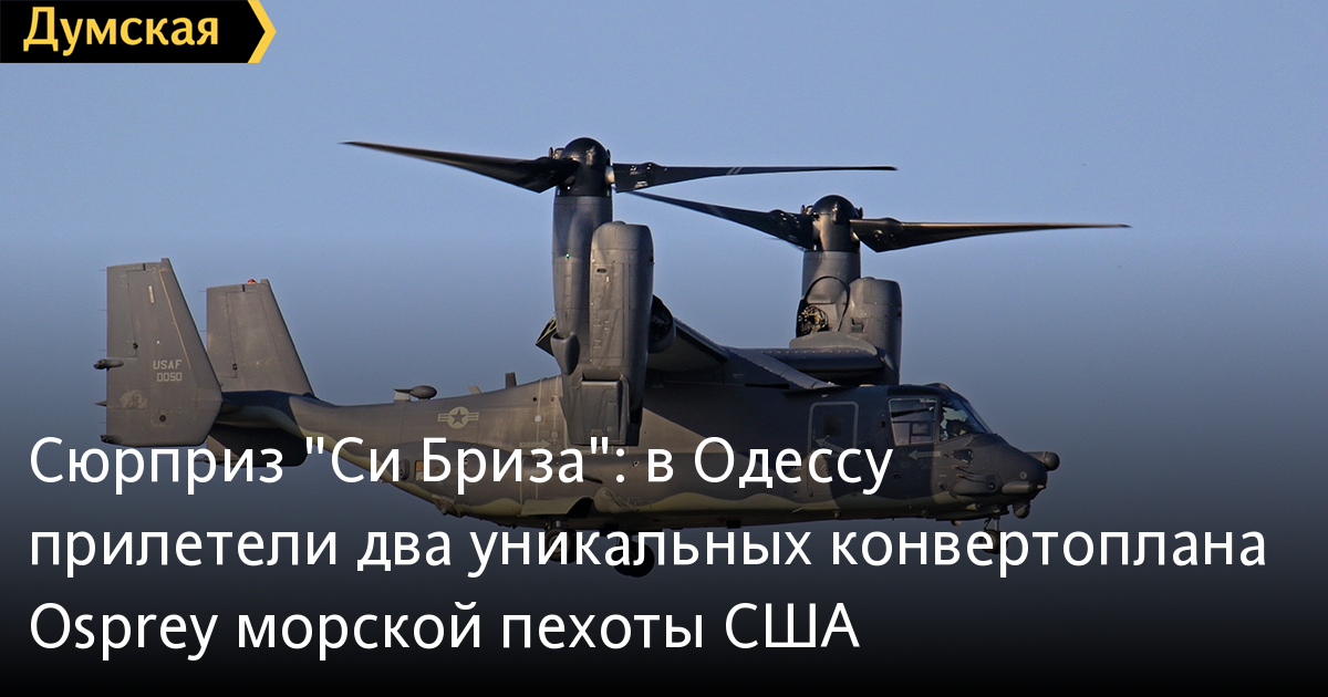 Вчера вечером в Одессу на дозаправку приземлились два очень редких летательных аппарата Bell V-22 Osprey. Это так называемые конвертопланы, которые совмещают в себе все преимущества как самолета, так и вертолета. «Оспреи» направлялись на одну из военных баз в Николаевской области, чтобы принять участие в учениях «Си Бриз-2017».