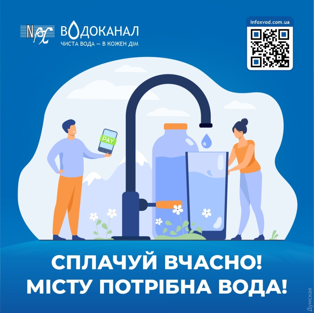 Щоб очистити річкову воду до стану питної та доставити її за десятки кілометрів до споживачів, підприємство щодня витрачає близько 2 мільйонів гривень. І єдине джерело надходження цих коштів — платежі одеситів.У воєнний час, як ніколи важливо, мати необхідний запас реагентів та матеріалів на випадок надзвичайних ситуацій.«Ми звертаємось до всіх своїх споживачів підтримати водоканал платежами за воду. Зробити це можна шляхом онлайн сервісів та на офіційному сайті водоканалу. Сьогодні це дуже важливо для нас усіх. Місту потрібна вода!» — йдеться в офіційному повідомленні компанії.