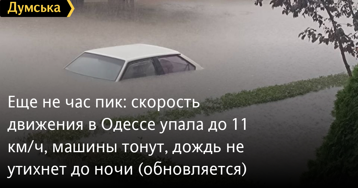 Ще не година пік: швидкість руху в Одесі впала до 11 км/год, машини тонуть, дощ не вщухне до ночі (оновлюється)