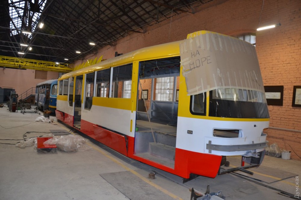 КП «Одесгорэлектротранс» до конца года планирует выпустить на линию еще два новых трамвайных вагона «Каштан» с частично низким уровнем пола, собранных в вагоноремонтных мастерских предприятия.