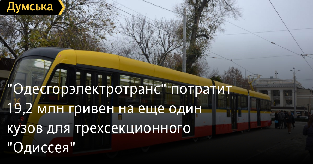 Тендер на покупку кузова трехсекционного частично низкопольного трамвайного вагона «Одиссей MAX» объявило сегодня коммунальное предприятие «Одесгорэлектротранс», передает корреспондент «Думской».