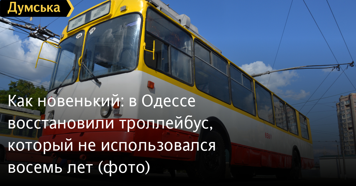 Ремонтно-реставрационные работы проводились в рамках обновления подвижного состава КП ОГЭТ. Кроме закупки новых современных троллейбусов, на предприятии не забывают и о капитальном ремонте старых трудяг. Так, машина №658 увидела свет в далеком 1989-м и много лет работала на одесских улицах. В 2011 году попала в аварию и восемь лет ржавела в депо, ожидая восстановления.