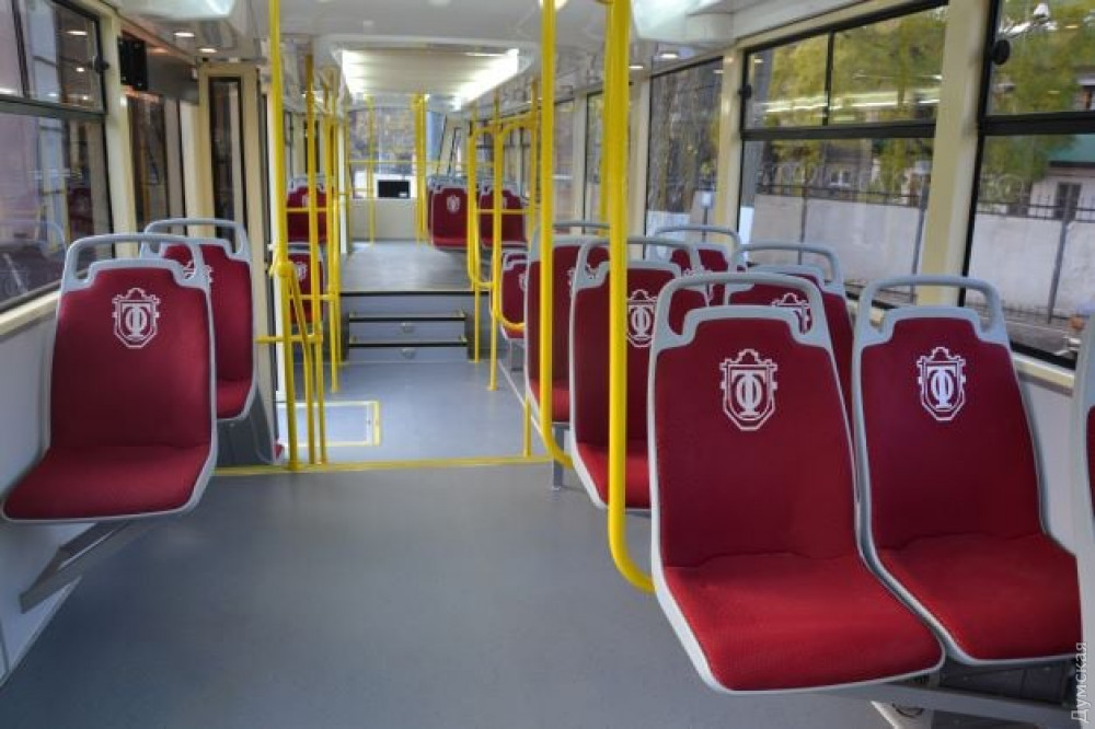 Как и предыдущий вагон, новый трамвай с частично низким уровнем пола имеет подсветку лестницы в салоне, места для зарядки мобильных телефонов.