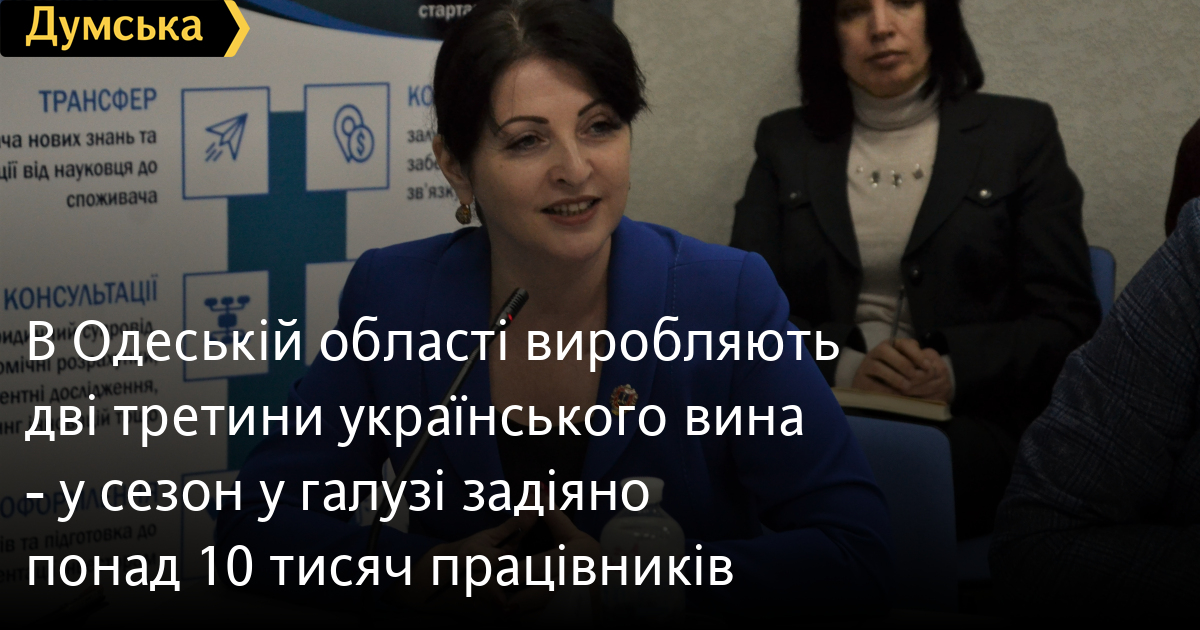 До 70% українського вина виробляється у Одеській області, яка є безперечним лідером у виноробстві України. Про це під час круглого столу «Шляхи розвитку винної галузі», що відбувся у Одеському національному економічному університеті, повідомила директорка департаменту аграрної політики обладміністрації Алла Стоянова.