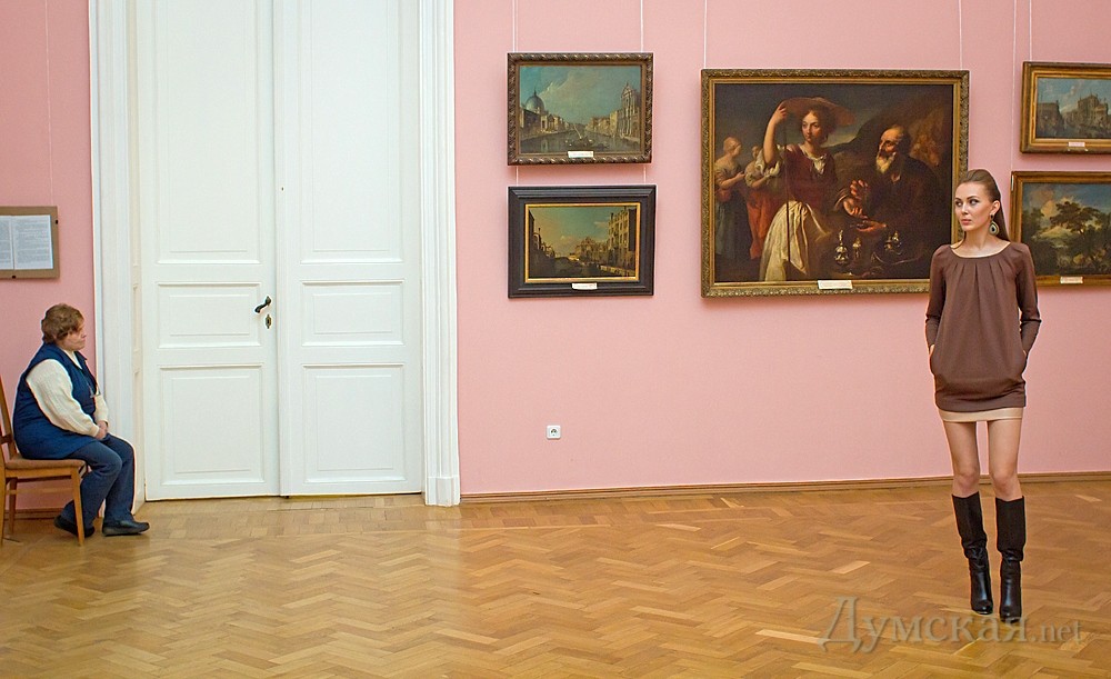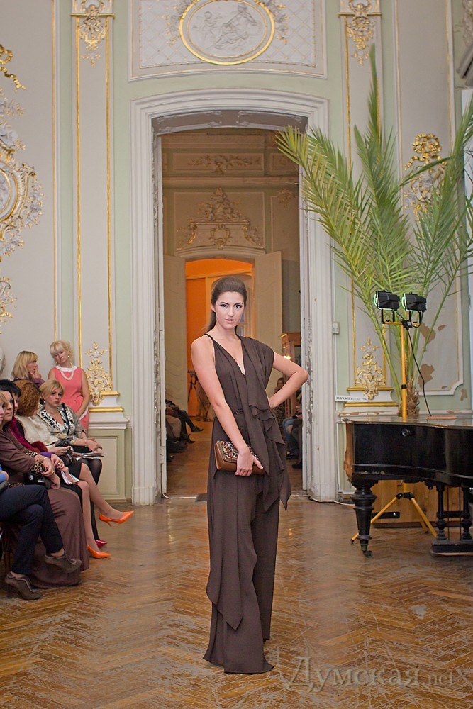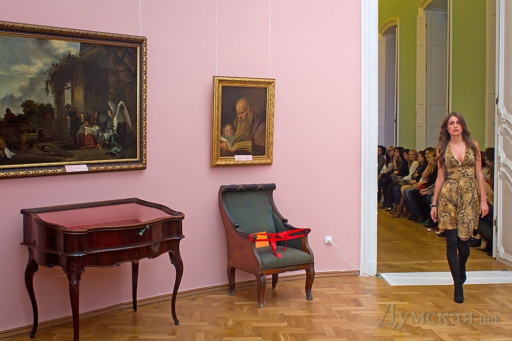 Odessa Fashion day: модели в современных нарядах дефилировали среди шедевров мирового искусстваВ Одессе проходит показ мод Odessa Fashion day. В этом году организаторы, подражая парижской и миланской практике, решили перенести модный ивент с обычного подиума в музей, а именно в музей Западного и Восточного искусства. За борьбой современной моды и старинной живописи наблюдали и корреспонденты «Думской». Официальной части трехдневного шоу предшествовало так называемое пре-пати, которое состоялось в одном из арт-кафе на Черемушках в минувшую пятницу. Гостей заманили не только дармовым алкоголем и фуршетом, но и мини-показом свежеиспеченного модельера…Натальи Бузько, под названием «Ничего лишнего». Оказывается, любимица Киры Муратовой и незабвенная клоунесса уже 20 лет шьет костюмы для коллектива «Маски-шоу». По неизвестным причинам, одесситка на мероприятии так и не появилась, так что гостям пришлось довольствоваться не живым показом, а одеждой на манекенах. Коллекцию Бузько, несмотря на преобладание в нем весьма актуального в этом сезоне кобальтового цвета, смело можно назвать консервативной. Признаться, неожиданный подход к стилю достаточно откровенной актрисы удивил публику. «Мне нравится, очень сдержано. Хотя не скрою, что удивлена. Думала, будет что-то с точностью да наоборот», — поделилась с нами гостья Ольга. Но самый интересный показ ждал одесских модниц в субботу. Площадкой для демонстрации осеннее-зимних тенденций стал музей Западного и Восточного искусства, а аналогом заезженного белого подиума — его увешанные шедеврами живописи залы. Такой ход организаторы выбрали не только ради красивой картинки, но и с целью популяризации искусства в Одессе. «В Париже коллекции показывают даже в Лувре, таким самым привлекая людей, которые может быть даже никогда не были в стенах таких зданий. Это возможность! Конечно, в музее много нюансов в плане подготовки, так как картинам не желателен лишний свет и лишние вспышки фотокамер, мы стараемся за этим следить. В этом нам помогает группа волонтеров. В следующий раз мы тоже будем проводить показ в очень нестандартном месте», — интригует организатор мероприятия Константин Леонтьев. Первая коллекция, как первый блин, вышла комом. Автор первого показа под названием «Ангелы» Валентина Гончарук выпустила на подиум моделей в белых вязанных крючком платьях, словно сошедших с обложек журнала «Бурда» годов восьмидесятых. Время от времени, впрочем, силуэты нарядов походили на что-то современное и даже радовали глаз. Не впечатлил и показ от творческого дуэта Tanita & Viktory – форму и стиль коллекции портила недорогая ткань и плохой покрой. Самым удачным, по мнению корреспондентов «Думской», была линейка одежды от бренда Тоmashevsky. Дизайнер выбрала правильную коммерческую тактику и не стала изобретать велосипед. Ее выбор – актуальные ассиметричные формы, потертости и унисекс. «Я показала в этой коллекции, каким есть человеческое нутро. Вдохновляли меня мужчины, в частности мой муж», — рассказала дизайнер Анастасия Томашевская. Не менее актуальными были коллекции одесситок Оксаны Семененко и Натальи Бибиковой. Последняя одела моделей в минималистическую деловую одежду в кофейно-пудровой гамме. «Мою одежду можно одеть и на деловую встречу, и вечером прогуляться. Меня очень вдохновляет Кристиан Диор», — р