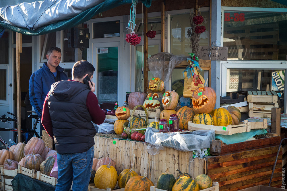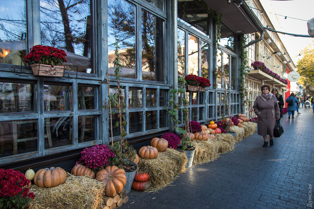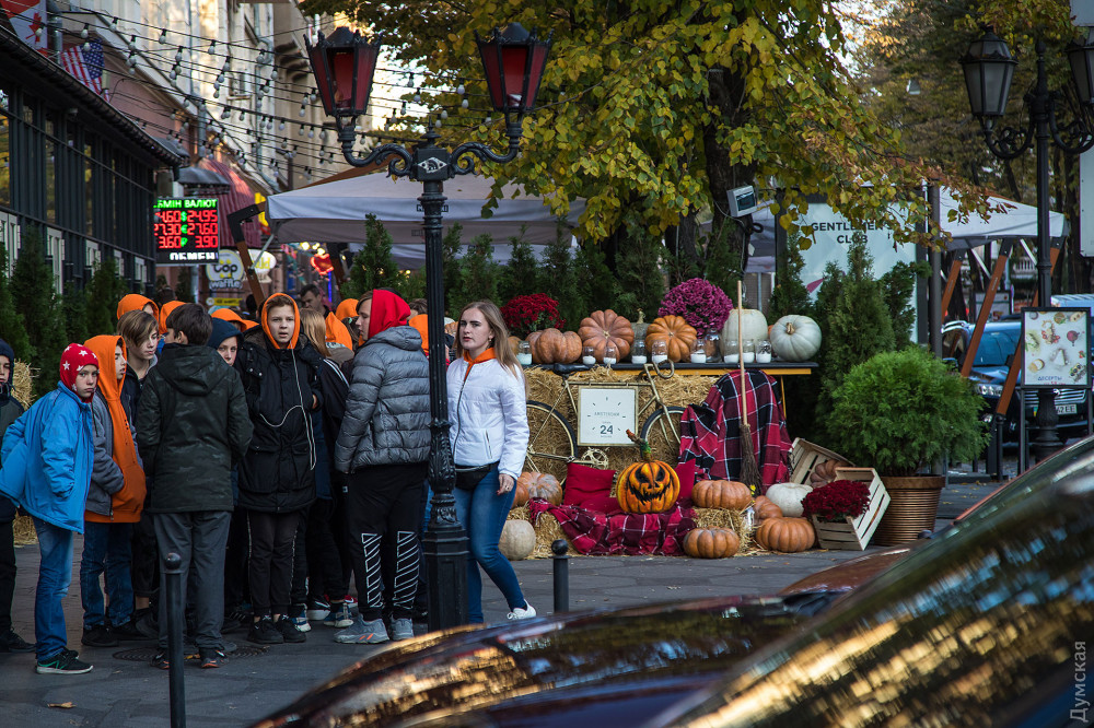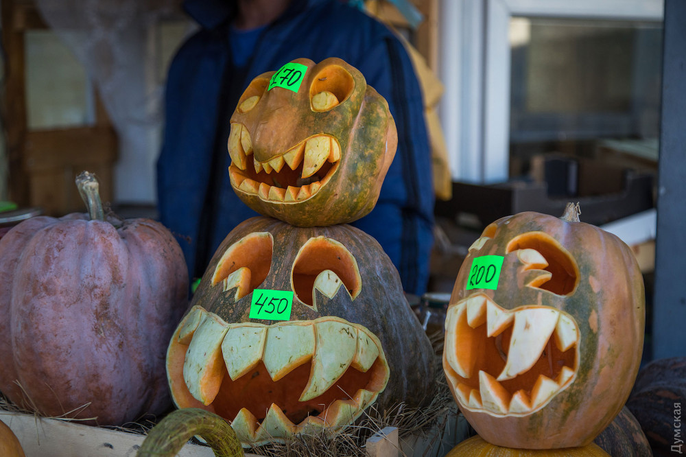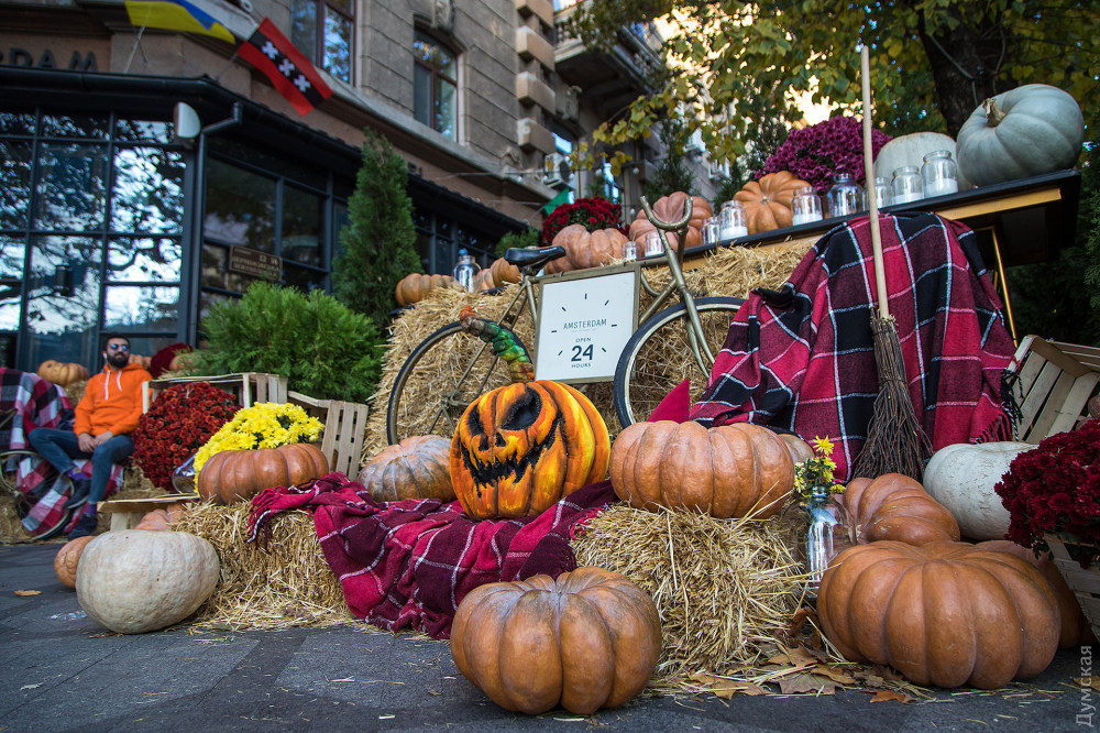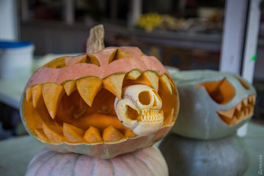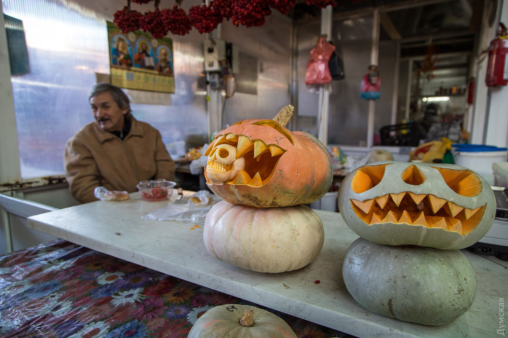 Фонари из тыкв, эти непременные атрибуты Хэллоуина, практически захватили центр Одессы.