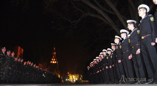Военная академия Одессы встретила верных присяге юношей из севастопольской Академии ВМС имени Нахимова.