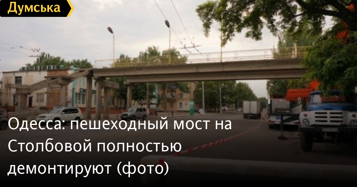 Сегодня начались работы по демонтажу бетонных конструкций пешеходного моста на Столбовой улице.