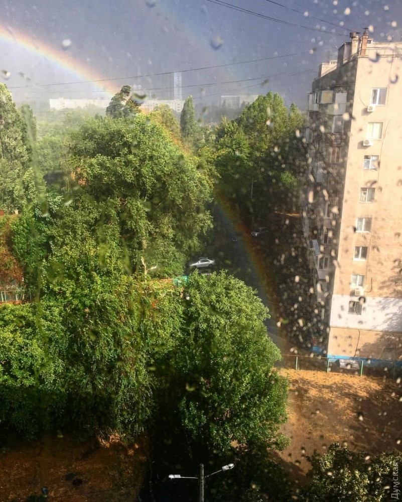 После мощного урагана в небе над Одессой сияла радуга
